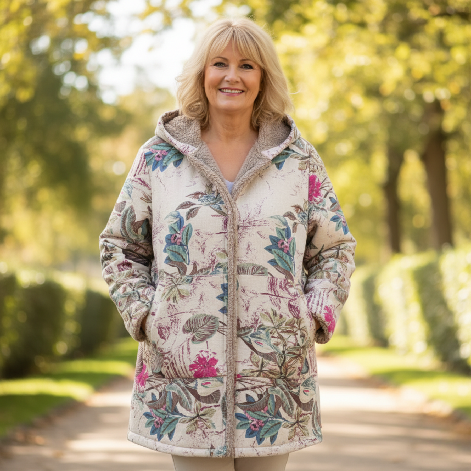 The Emilia | Floral Hooded Winter Coat is designed for women who want to stay warm without compromising on style. Featuring a soft fleece lining and a durable outer layer, this coat offers cosy protection on colder days while remaining comfortable and easy to wear.